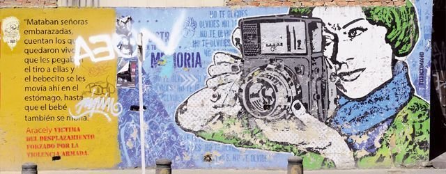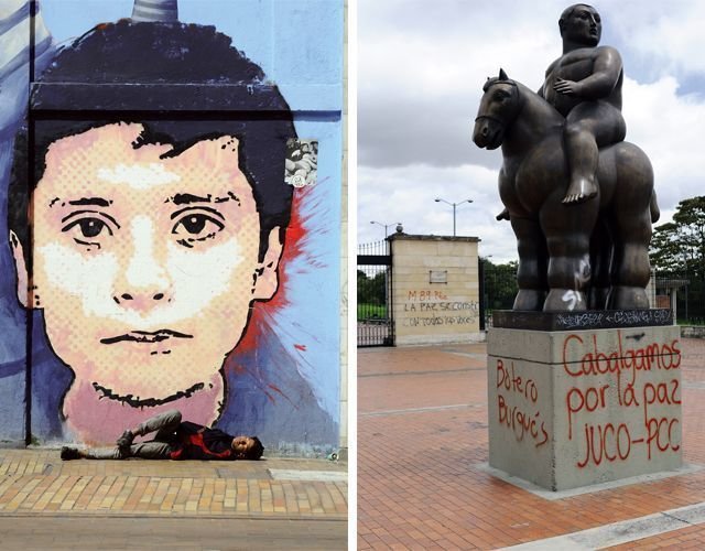 Subido en un taxi o «zapatico» amarillo alcanzas la Universidad Nacional y te percatas de que los muros capitalinos son lienzos reivindicativos donde la palabra y el grafiti plasman conceptos como los de: magia, color, memoria e identidad. A pesar del gris, «el tono de la mugre que se agarra al jean después de estar sentado tomando en un parque», como te dice el «pana» (amigo) Francisco cuando le preguntas por el color de la ciudad, Bogotá irradia un espíritu RGB (siglas en inglés de Rojo, Verde y Azul). Y es que, de la mano de la tragedia sus más de 7 millones de habitantes bailan, gritan y saltan por encima de la superficie y underground.